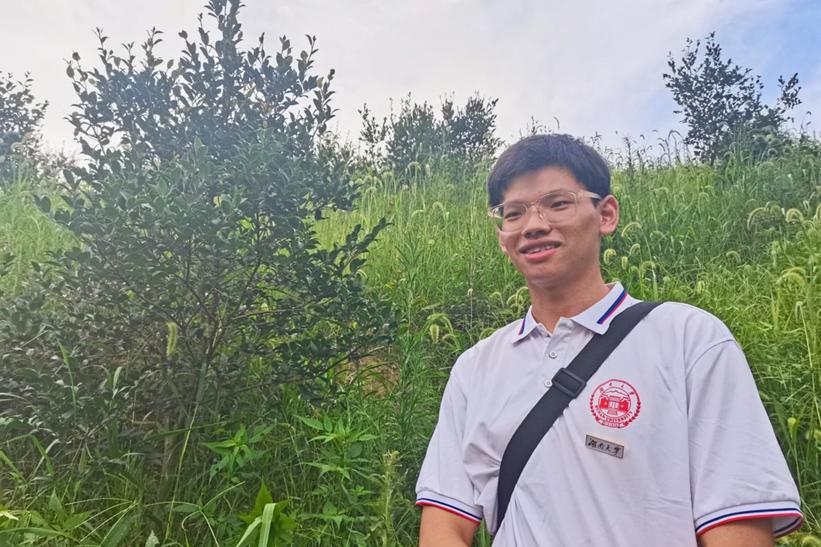 (同学近距离观察山茶树)