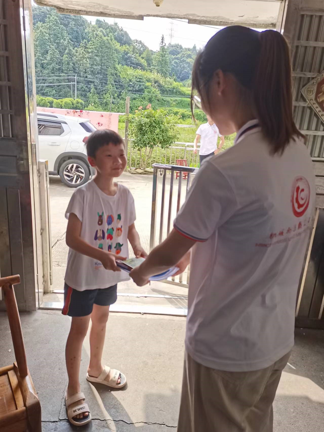 见到家里来人,老人的孙女也探出头来观望,我们就顺势叫她一起来聊天,再询问了学习有关的内容后,队员给小朋友送上了先前筹备的球王会体育官网文创产品以及书籍文具,并祝福小朋友学业有成,开心快乐!