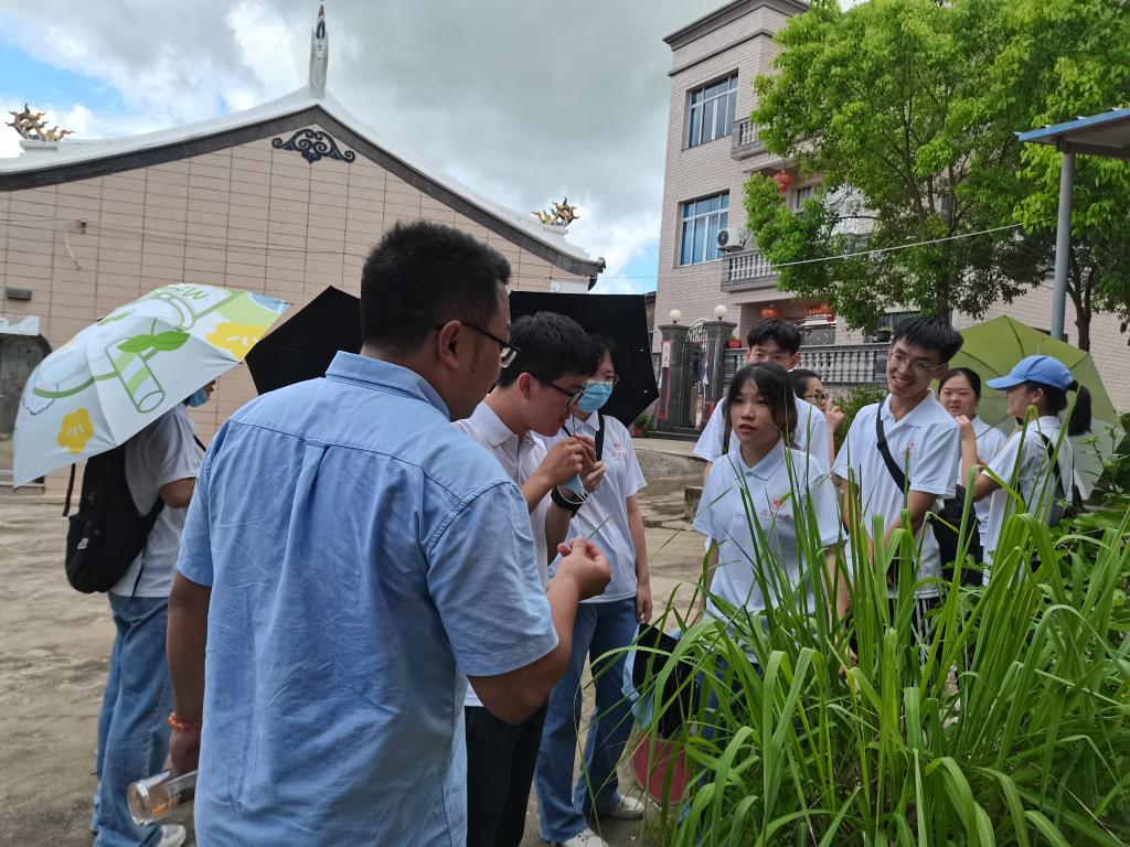 林书记向成员们展示了他所收集的中草药植株并向成员们详细介绍了植株的具体功效。在村长的介绍下,成员们惊奇地发现他们早已司空见惯的一些植物竟蕴藏着许多神奇的功效。结合本次“三下乡”的主题,成员们同村长积极探讨中草药植株种植对乡村村财增长的可行性。