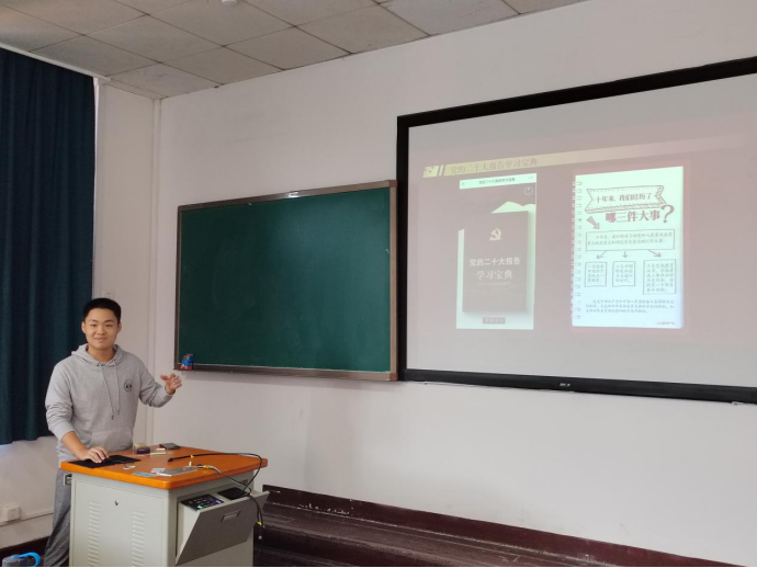 首先,王智立带领同学们回顾了二十大中取得的令人瞩目的重要成果,包括党的二十大报告的宣读,党章的修改,以及三个“一定要牢记”的内容,鼓励同学们踏踏实实、奋发有为,为党和国家的现代化建设作出自己应有的贡献。
