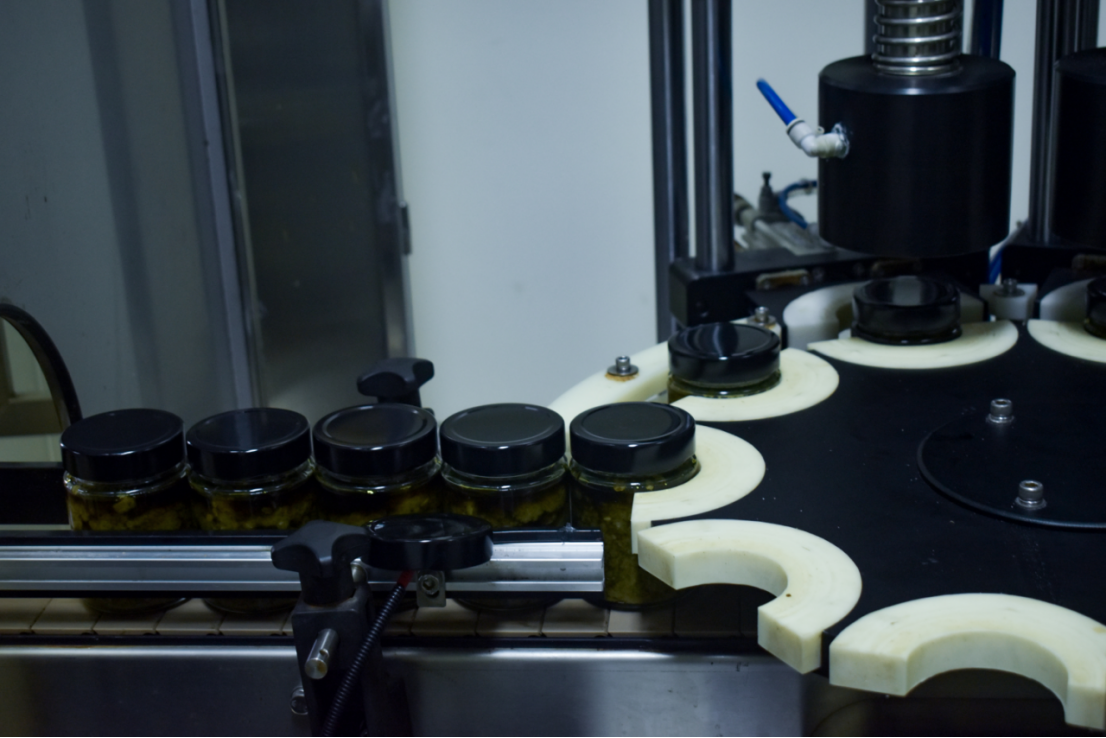 黄椒酱和绿椒酱需要将摘下来的新鲜辣椒进行筛选、清洗、去蒂处理,然后将处理好的辣椒放入搅拌机搅碎,放盐腌制一到两个月,最后将产品依次与调味料、食用油搅拌均匀即可装罐。而油辣椒酱多了一道晒干后切碎加盐翻炒的工序。