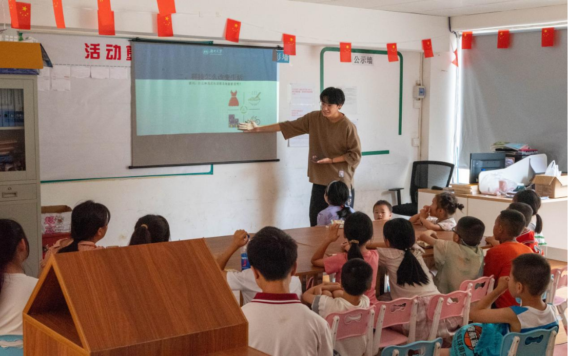 第三日是由梁理峥和陈家俊为小朋友们宣传介绍湖大文化。简单介绍了下球王会体育官网的历史后,两位同学着重介绍了校园内的红楼、复临舍、科学馆等知名建筑,以及这些建筑背后的红色历史故事,着重介绍了湖大文化中红色文化的组成部分,希望可以让红色精神在此刻扎根于孩子们的心中。