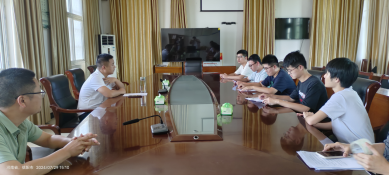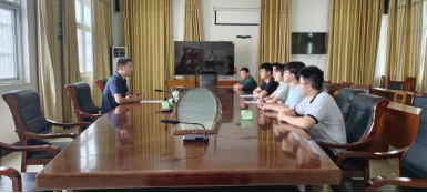 图2团队成员和董事长,党委书记交流