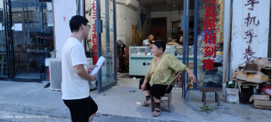 图3 团队成员打扫街道卫生和采访村民