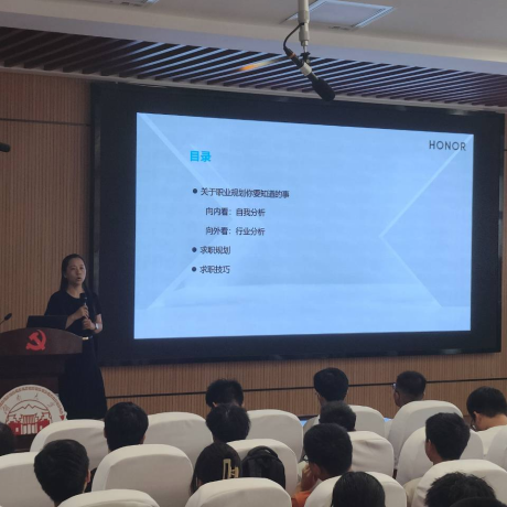 讲座伊始,刘明然介绍了游咏的基本履历,以及她在人力资源和招聘领域的丰富经验,同时也希望各位毕业生积极主动的在毕业季为找工作行动起来,多尝试多参与面试和招聘。