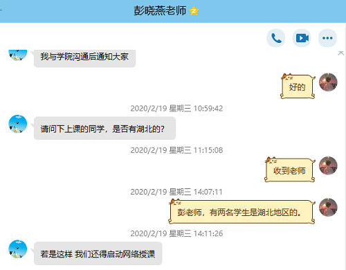 彭晓燕教授本学期共开设两门教学课程,包括一门研究生课程《机电一体化控制技术》和一门本科生课程《微机原理》。彭晓燕老师在她多年的教学任务中始终秉持着“以员工为中心”,“以提高教学质量为前提”的教学态度。当得知春季开学时间推迟初期,为了保证员工的学习效率和教学质量,她提出开课时间推迟到开学后面对面授课,并逐一和员工进行沟通与确认。随着疫情的恶化,彭晓燕老师考虑到湖北地区员工可能会进一步推迟返校,在确认班内有湖北籍员工后,为了不落下任何一名员工,她第一时间起动线上教学方案,并虚心的向与已开启线上教学的老师学习经验,以最快的速度制定了高效的教学方案。