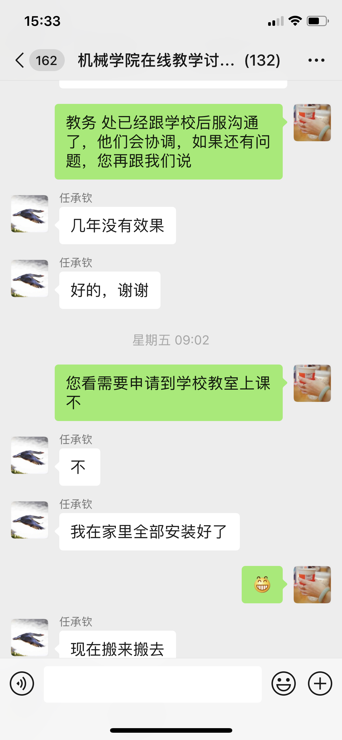 有老师反映在东楼附近,有施工队每天施工,噪音很大,影响老师上课,左老师看到消息后马上联系了教务处相关老师,又反馈给公司后勤服务公司,帮助老师做好后勤保障工作。