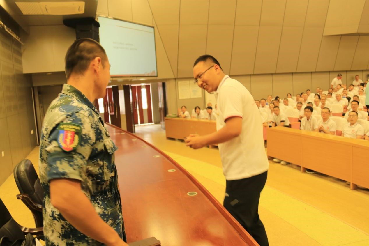 此次军训动员大会特邀请了陆军某特种作战公司特种作战与指挥专业硕士研究生为新生开展军训动员与国防教育,他曾担任过空军某航空兵营长、师机关参谋、基地(军)机关参谋。首先他从国际局势引入,带领新生们走进国防领域,使同学们意识到,纵然目前国泰民安,但我们仍应当对当今世界局势有清楚的认识和了解。便用几张照片展示了国内外四十年间的变化,从照片清晰可见,中国沧桑巨变、日月换新天,经济建设得到了飞速发展,人民的物质生活得到了极大的提升,国际地位迅速提升。而我们国家的进步,都离不开中国建国以来和平的环境。在这样和平的环境下长大,高校员工更应饮水思源,找到自己生而为人的价值,从小我到大我,在国家发展腾飞的过程中也追逐自己的中国梦。结合曾任特种兵的经历,他分享了军旅生活的一些故事,让同学们对军人更加敬佩、对军旅生活更加向往。授课过程中,邀请了部分新生进行互动,并向参与互动的同学赠送了纪念品。