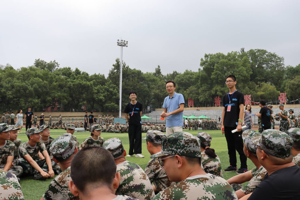 在“组织休息”的哨声吹响后,刘文洋老师和新生助理一起去方阵看望了二营二连一排的新生。还没走到新生所在的方阵,他们就以热烈的掌声表示欢迎。刘老师在对新生的讲话中表示,军训是新生适应老员工活,熟悉周围环境的有效方式。军训虽然艰苦但同样有很多值得回味的瞬间,希望大家珍惜在一起的时光,和谐相处,共同进步。