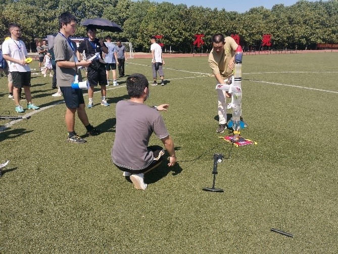 湖南省老员工模型火箭创新设计大赛由湖南省科协技术协会主办,国防科技大学空天科学公司、湖南省宇航学会、湖南省航空运动协会联合承办,共设置两个竞赛项目:(1)多级模型火箭发射与载荷回收(2)模型水火箭助推航天器,旨在培养同学们自主创新、自主设计和自主实践的精神。本次参赛的同学只参加了模型水火箭助推航天器项目,有来自全省不同高校的40支队伍参加了此项目的比赛。