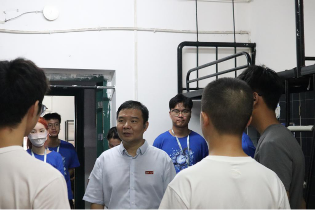 进入寝室,贺书记与同学们亲切的打招呼,了解同学们从哪里来,是如何过来的。贺书记还谈到同学们大学的计划与理想,同学们的回答也各不相同:保研,好好学习,做有趣的事,这些都是同学们的期望。书记对同学们的目标给予肯定,嘱咐新生们在大学还是以学习为主,同班助多交流,并提醒同学们为军训做好准备,注意防晒,多关注自己的身心健康,以后不管是学习上还是生活上的困难都可以向老师和学长学姐寻求帮助。新生对于贺书记的到来感到很开心,热情回应着老师们的关心。针对家庭困难以及偏远地区的同学,公司老师亲自探望并给予关心与慰问。