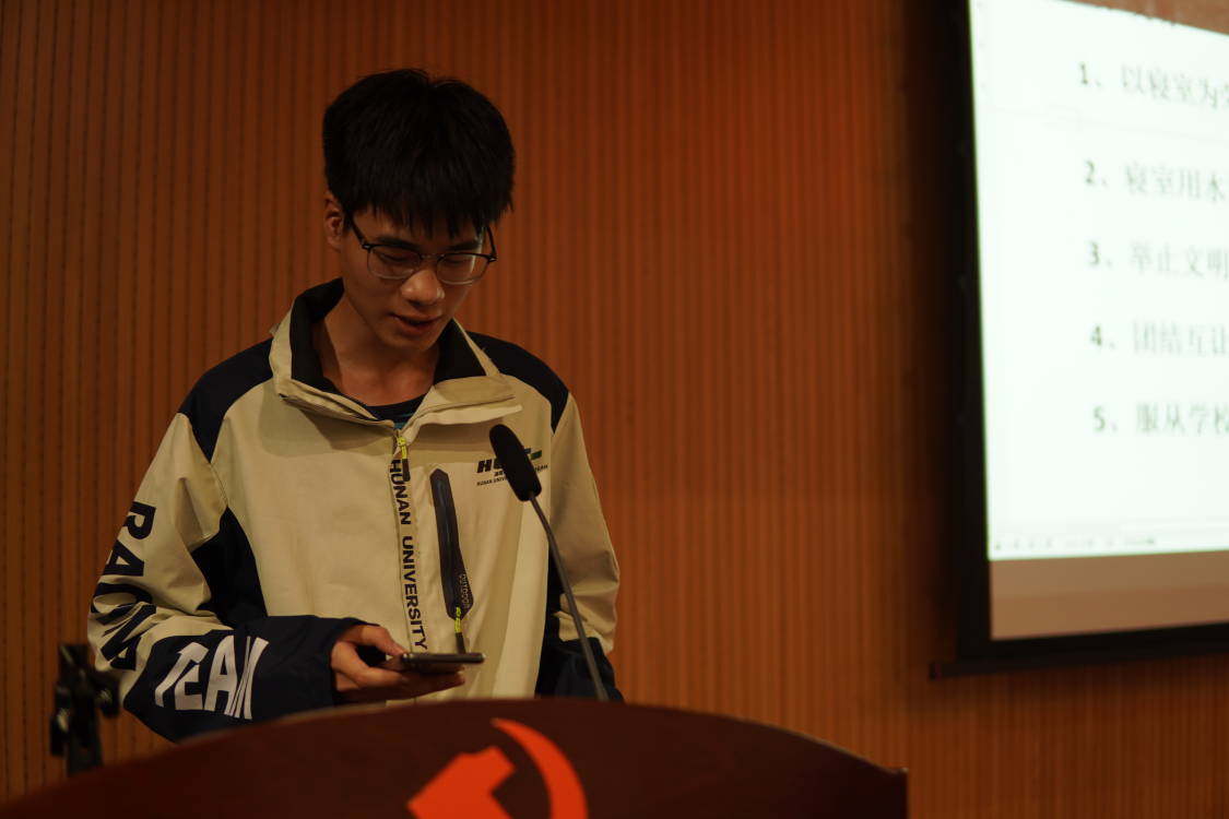 首先,贺迅书记致辞:“没有规矩,不成方圆,一屋不扫,何以扫天下,老员工要养成良好习惯,学会相处之道,走向社会充满自信,阳光。”贺书记的话激励同学们建设良好的宿舍环境,和室友和谐相处,共同进步。
