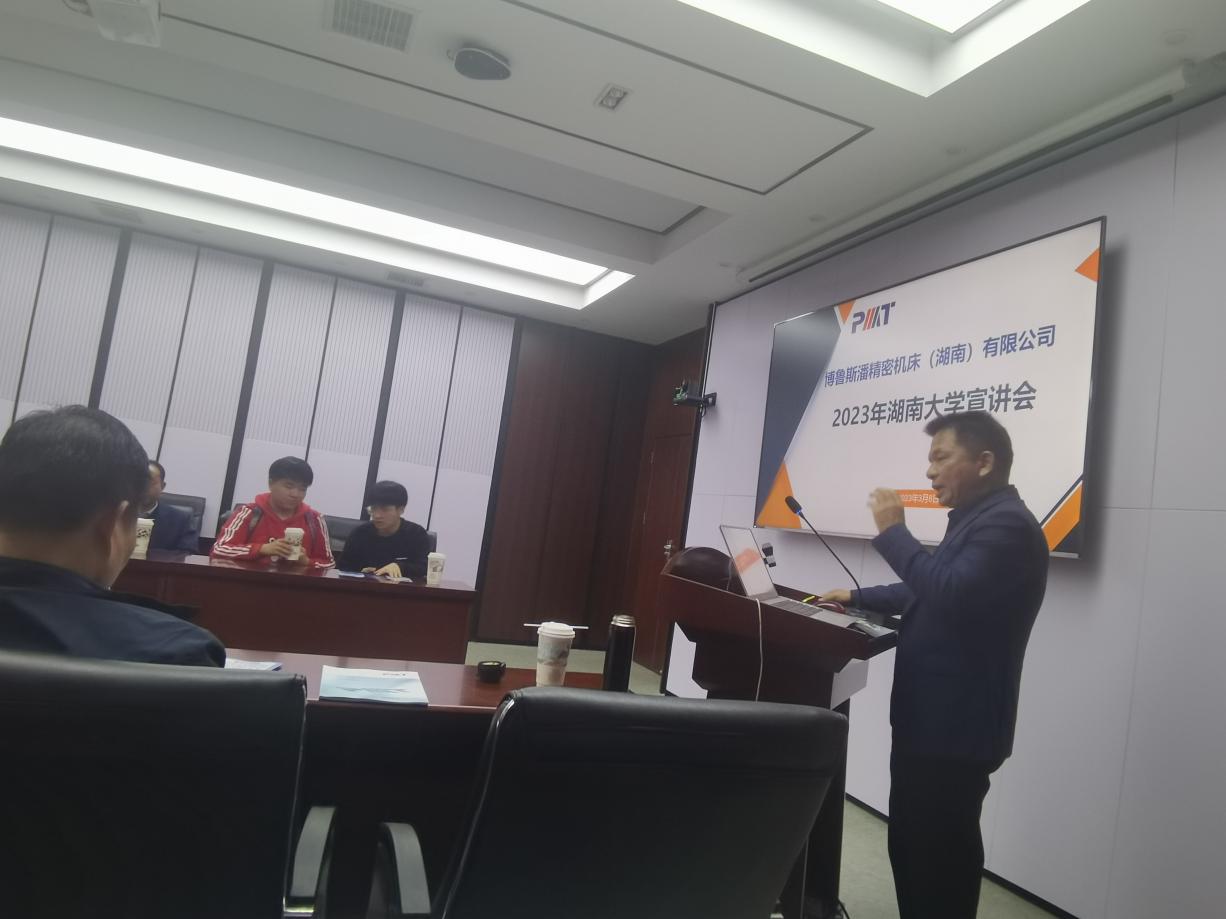 博鲁斯潘精密机床公司是国家级高新技术产业,董事长吴行飞博士,作为球王会体育官网机械院毕业生,怀着对母校的莫大情怀亲自出席宣讲会。此次会议意义不止是企业的招聘,更是作为由湖大走出的学长,向学弟学妹分享人生路上的宝贵经验,以及对行业的认知。