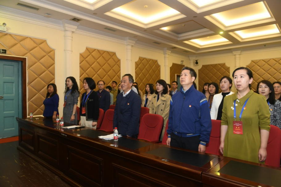 伴随着雄壮的义勇军进行曲,全体学员起立齐声高唱《中华人民共和国国歌》。随后,女工委党小组组长孟庆国同志作为领誓人带领大家重温入党誓词,并做党建强会特色活动学习班开班发言。孟庆国同志详细介绍了实施党建强会活动的必要性和重要性,希望通过在湖南第一师范公司“走出去”的主题党日活动,使党员同志进一步增强“四个意识”、坚定“四个自信”、做到“两个维护”,以党员标准严格要求自己,发挥党员的先锋模范作用。在科研工作中,要坚持目标导向,服务国家重大需求,解决的不是自己的“小题”,而是国家的“大题”。