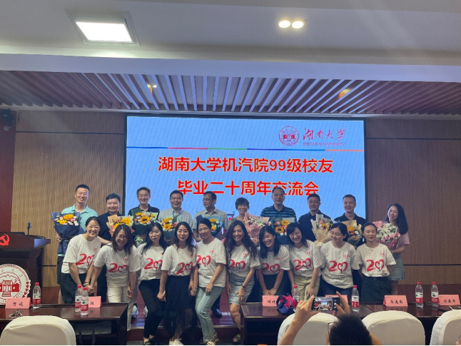 交流会结束之后,99级员工协同老师一起在机械院楼前进行合影留念。二十年过去,员工与老师都在一届届更替,但只要有同一个湖大在这里,就能从天南海北再聚首。这种情怀会像酒一样,越酿越纯,随着时间越发深厚。期待着下一个十年同学们再相聚,风流依旧。