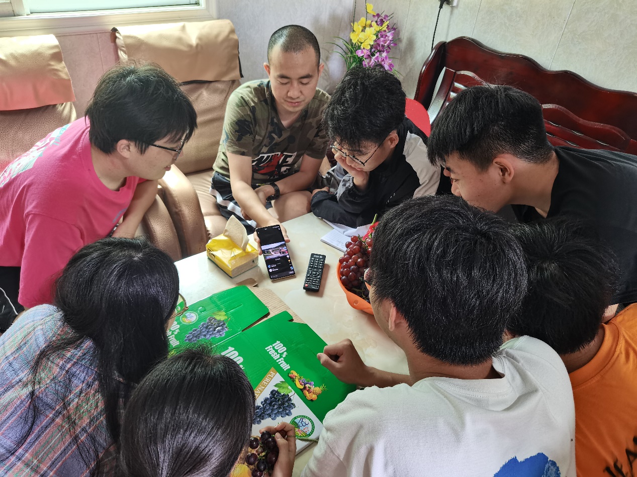 调研团队在交流时观看杨李制作的视频