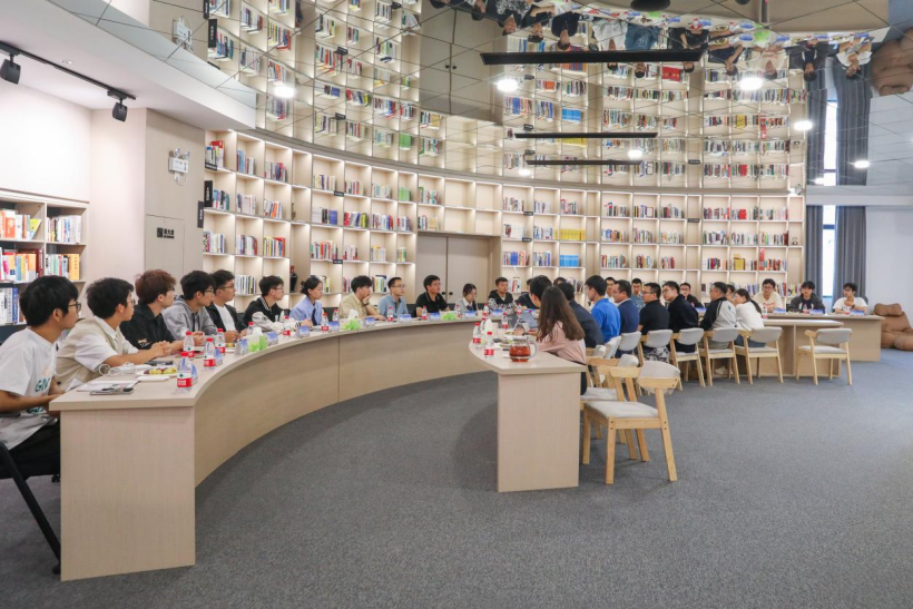 回到图书馆后,校企双方举行了座谈会。啄木鸟公司副总经理林剑华与各位老师同学进行了深入的交流,黄敏、周兵老师为公司的各位介绍了球王会近来的工作情况与学术成就,林剑华表示,能够与球王会体育官网一道助力人才培养,是企业的社会责任,未来会与球王会体育官网加强合作,共同搭建校企联合培养的桥梁,培养更多、更优秀的人才。之后,由来自公司研发、销售、供应链管理等部门的各位优秀的员工为大家介绍了各自岗位的工作内容,分享了入职后的感受与工作经验,耐心为同学们提出的问题解答,通过聆听几位员工的亲身体会,机械院师生进一步感受到了啄木鸟公司奋斗、拼搏、友爱、互助的氛围。
