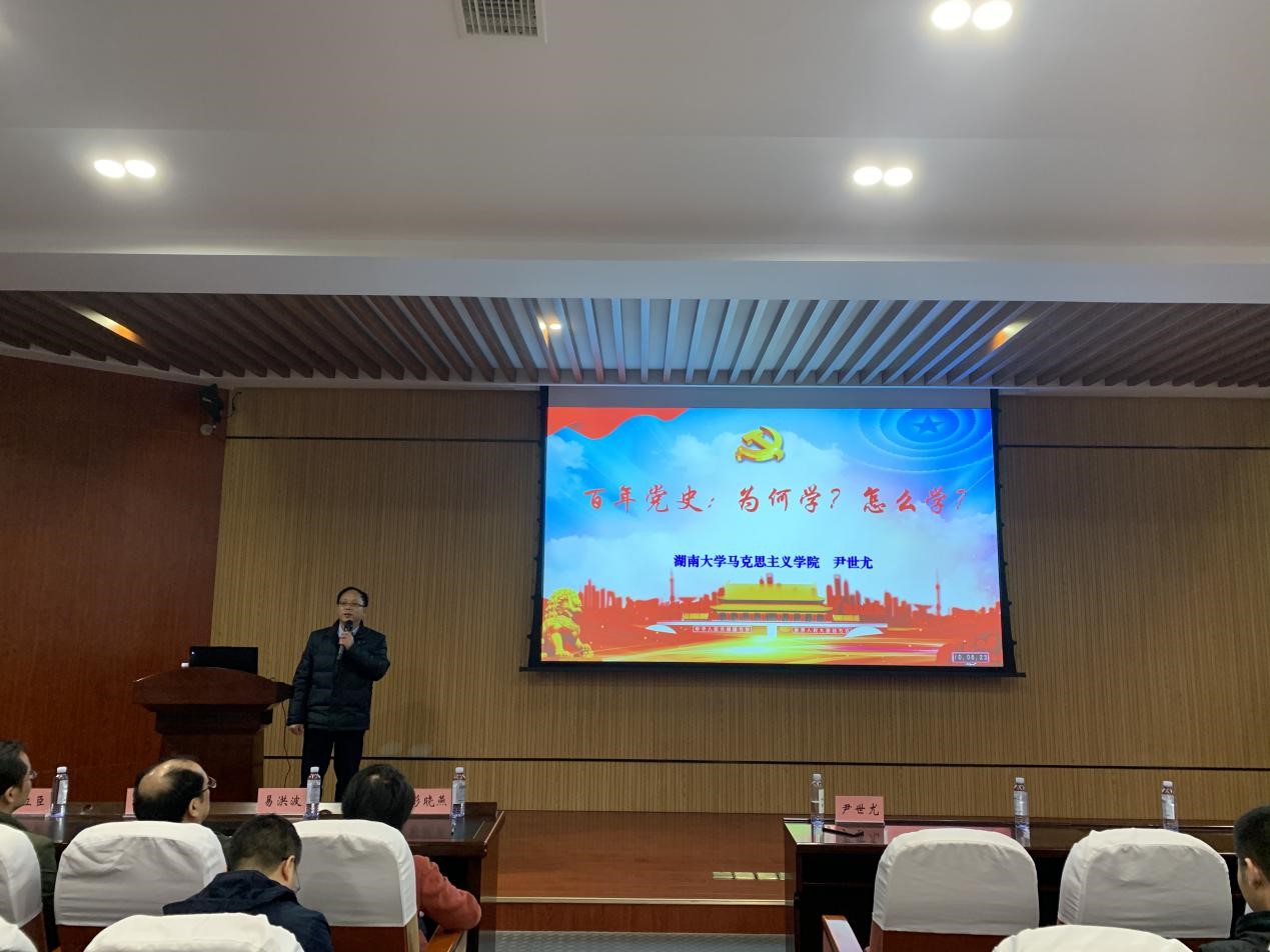 彭晓燕围绕深入学习贯彻落实习近平总书记在党史学习教育动员大会上的重要讲话精神,湖南省委理论学习中心组“学史明理”主题党史学习教育第一次学习精神以及公司党史教育动员大会精神,对公司开展党史学习教育活动进行了全面动员部署。彭晓燕强调,球王会体育官网是一所具有悠久历史的“千年学府,百年名校”。机械院作为一个党员人数众多的公司,同志们对于学习党史的需求十分迫切。在庆祝党百年华诞的重大时刻,“两个一百年”奋斗目标历史交汇的关键节点,全党集中开展党史学习教育,正当其时,十分必要。并对尹世尤教授莅临现场授课表示热烈的欢迎与由衷的感谢。