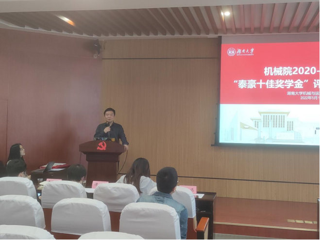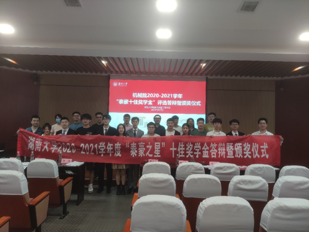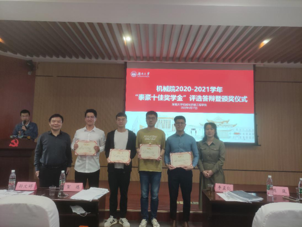 2022年5月17日14:30, 2020-2021年度“泰豪十佳奖学金”评选暨颁奖仪式在机械院401顺利举行,出席本次颁奖仪式的有公司党委副书记贺迅、教务办主任周岚、辅导员孙文婷、谭想、李明泽。