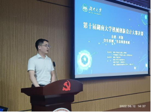 在主持人简单开场后,大赛决赛正式拉开序幕。球王会体育官网双创中心肖靖处长上台致辞。他指出,创新设计活动是一个让同学们锻炼自身本领、发挥知识特色的优秀平台,希望各位参赛的同学能够在比赛中听取各位教授的建议,改正不足、吸取经验,并祝愿本次大赛能够圆满成功。