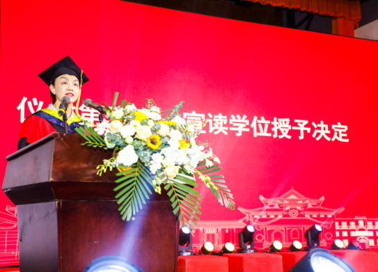 彭晓燕书记宣读了《球王会体育官网学位评定委员会关于2021-2022学年度博士、硕士、学士学位授予的决议》。共404名本科生,404名硕士研究生,24名博士研究生被授予学位。
