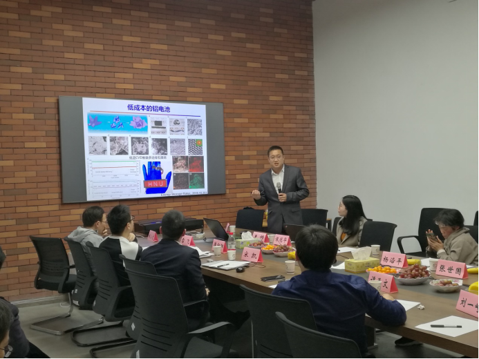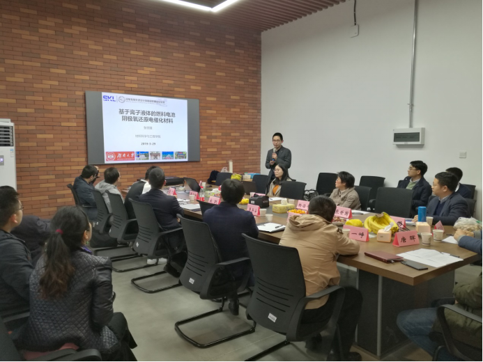宋凯副教授首先代表成艾国教授团队介绍新能源汽车发展对电池研究的需求,新加入实验室的张世国教授(青年千人,来自材料公司)介绍了基于离子液体的燃料电池阴极氧化还原电催化材料,谭永文教授(青年千人,来自材料公司)介绍了纳米多孔金属材料的构筑及其功能,李勇教授(青年千人,来自电气公司)介绍了从复杂网络与电能质量视角评估电动汽车充电对电网/交通网的影响,鲁兵安教授(物理院、来自物理公司)介绍了新型石墨材料的研发及其储铝性能,张冠华副教授介绍了电池功能结构设计及制造,雷飞副教授介绍了电池散热系统的需求,杨小龙副教授介绍了电池热管理系统及BMS,闫航航同学代表崔向阳教授团队介绍了多尺度手段在新型储能体系探索中的应用,张良同学代表何莉萍教授团队介绍了新能源汽车动力电池新材料及动力电池系统的设计与研发,杨沿平教授介绍全生命周期评价对新能源汽车发展的要求。会议期间,杨沿平教授提醒新能源汽车方向的研究学者,在科研的同时务必考虑社会效益问题,研究出的成果不能以牺牲环境、浪费社会资源为代价。用一句话来说就是要求学者 “不要因为走得太远,而忘记为什么要出发”。张军副教授介绍了他们团队在电池封装及电池散热方面的工作及思考。本次讨论会由重点实验室副主任邓久华策划组织并主持。科研院基金办唐晖主任,科研院刘一峥老师受邀参加了讨论会,唐晖主任希望大家能通过交叉交流,促进联合,共同组织申报大的项目。土木公司博士研究生王帅代表陈政清院士团队参加会议,10余新能源汽车方向的硕/博士研究生参与本次讨论会。