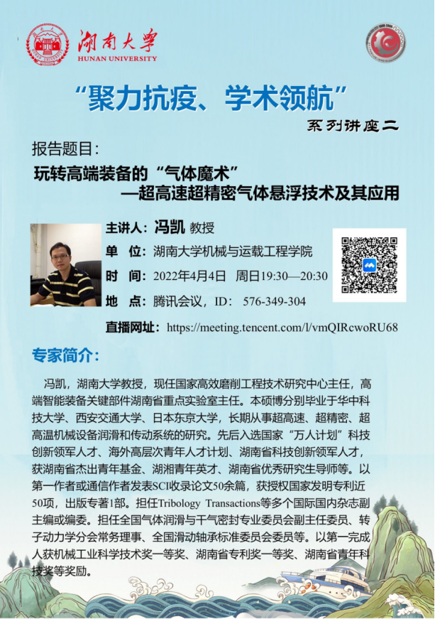 报告题目:玩转高端装备的“气体魔术”——超高速超精密气体悬浮技术及其应用