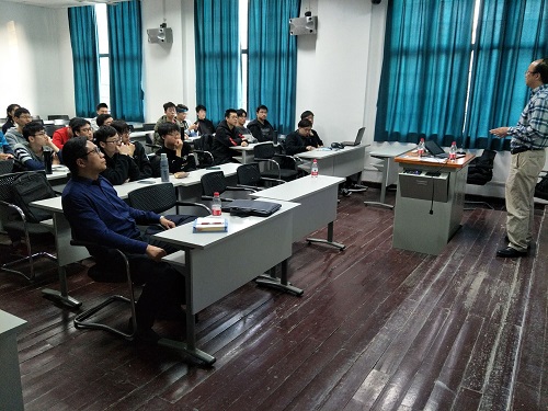 然后是文桂林教授围绕自己的亲身经历作了深刻而有趣的分享指导。他首先说到:“作为班主任,只负责给你们讲道理,我只管你们犯迷糊的事。”这与唐代大文豪韩愈所言“师者,所以传道授业解惑也“有异曲同工之妙,至于日常生活之事优秀的人自然能够合理规划。接着,文教授以自己团队的研究历程为例,劝勉同学要实干、坚持、拼搏,只要有激情,有正能量,就不会埋没个人的聪明,要把时间用在做有意义的事上,公司、各种平台只是辅助,决定命运是要靠自己,要树立长远的目标,着眼于未来才能更好的成就自己。文教授谈起团队的研究成果,滔滔不绝,如数家珍,令人肃然起敬,同学们受益匪浅。