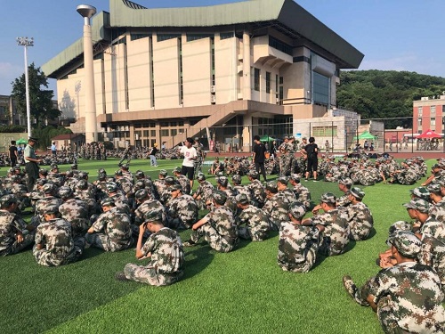 9月4日下午3点,炎炎夏日,身着迷彩的19级新生们整齐地站立在绿茵场上。即使头顶烈日,但依旧站立挺拔如松,不见丝毫懈怠。军训休息的间隙,来自机械院网络信息中心的两位负责人高锦程、边文超同学也来到了绿茵场上,准备进行机械院网络信息中心的招新宣传。