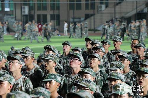 当练习快要结束时,二营全体同学起身立正,最后一次检验练习的成果。“我和我的祖国,一刻也不能分割,无论我走到哪里,都流出一首赞歌……”,悠扬的歌声在夜空上中响起,歌声婉转却又高亢激昂,在场班级助理们也都跟着和唱,气氛热烈融洽。一曲终了,掌声如雷鸣般响起,合唱练习也圆满结束。
