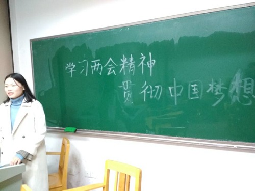 3月9日晚,球王会1514班在综合楼441召开主题班会, 班会围绕“学习两会精神,贯彻中国梦想”展开。