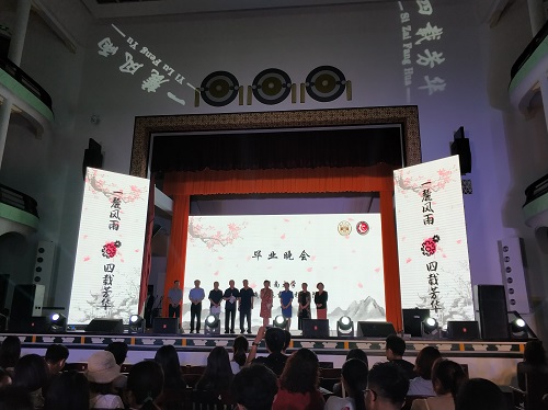 第一个节目以街舞火爆开场,专业帅气的舞步让观众挪不开视线。紧接着全体国防生带来的的《空军进行曲》以整齐划一的歌声和步伐获得全场掌声。歌舞串烧,形式新颖,将流行舞蹈和经典音乐相结合,给观众带来了听觉和视觉的双重盛宴;方言脱口秀《说啥你都听不懂》通过各种网络流行词汇的灵活运用,正经地抛出一个个笑点,另台下同学们捧腹大笑;一首悠扬动听的男女对唱《风吹麦浪》营造了温暖的氛围,牵动了青春的记忆,每一个人都沉浸在婉转的歌声里;意境舞蹈《大鱼海棠》更是以了浪漫的意境和唯美的古舞,给观众们带来了丰富的视觉享受;三位辅导员的首次同台,一首《消愁》,说出了他们心底的真实感触;还有退休老师们带来的大合唱,深厚的美声功底令大家赞不绝口。临近尾声,由各班员工代表组成的朗诵队献上《毕业别词》,“四年师友昨日成追忆,千里之行今朝正起航”。毕业生们即将踏上人生新的征途,开启梦想,愿他们谨记母校的校风校训,秉承公司的优良传统,心系母校,不忘师恩,前程似锦,一展宏图。